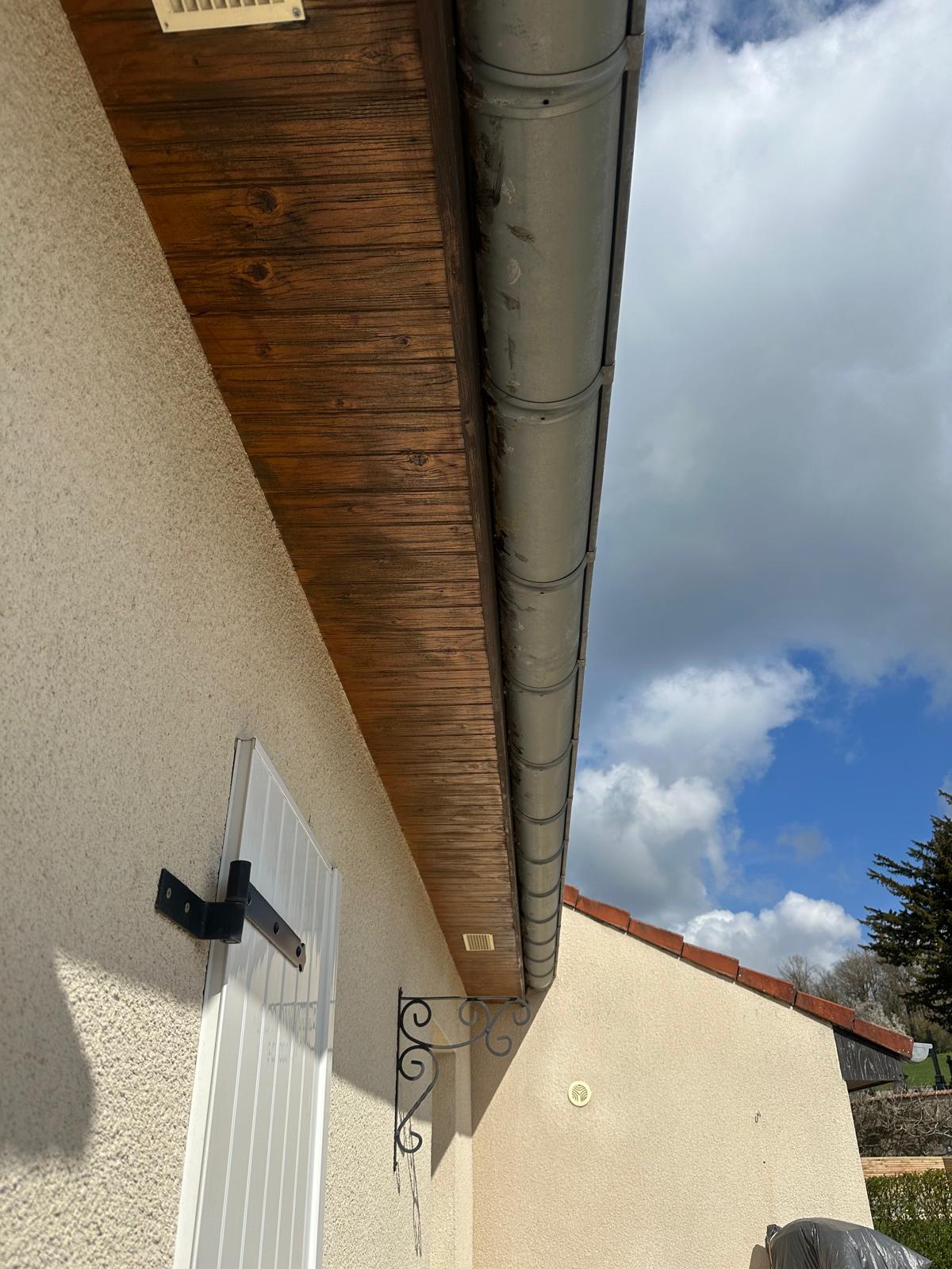 Les anciens dessous de toit en bois, comme ceux présents sur cette maison avant notre intervention, finissent par se dégrader sous l'effet des intempéries. Le bois noircit, se fissure et perd son rôle de protection. Le PVC alvéolaire offre une solution durable : il ne pourrit pas, ne nécessite aucun entretien et conserve son aspect au fil des années.